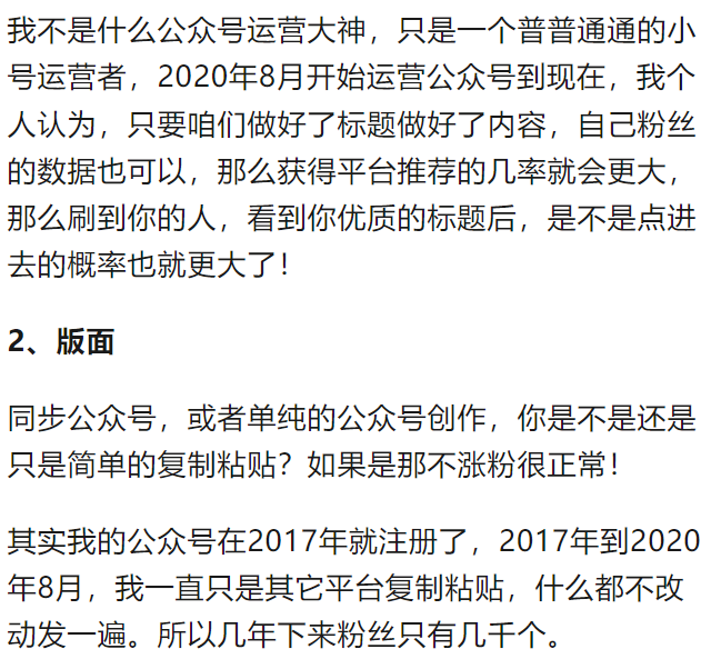 特别是当下,公众号有了一定的推荐流量,新人做账号不会至于太“难看”,但目前即便是有推荐流量,也不要太理想,因为推荐流量不会一直光顾你。