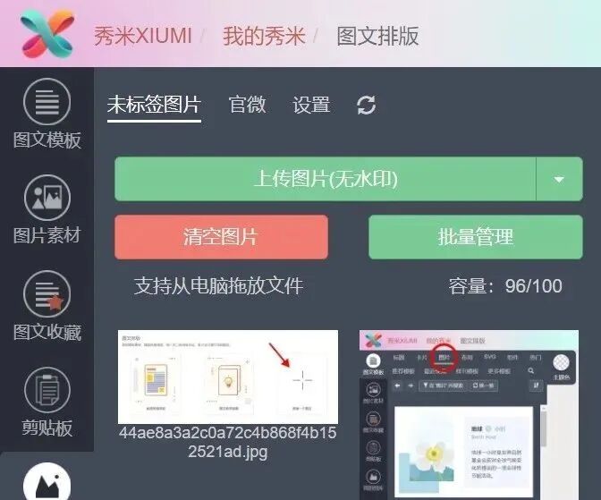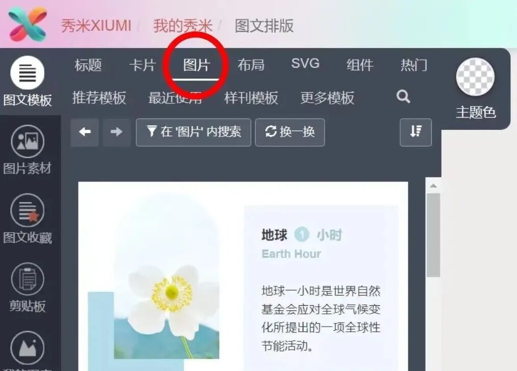 在左上角图文模板中选择“图片”,这里有大量的图片模板可供筛选和使用;