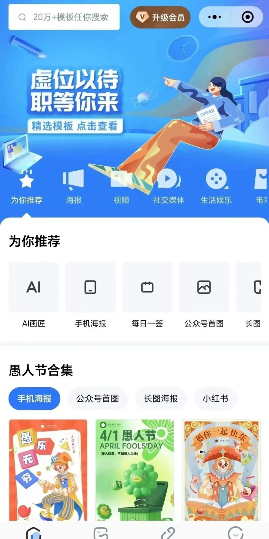 公众号推文中精美的封面图、头图、尾图以及海报、动图等,我们都可以通过设计网站和平台来进行快速制作。