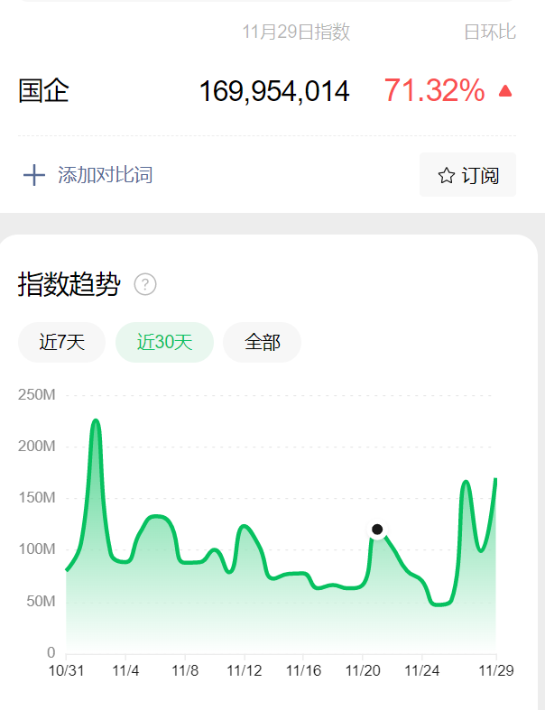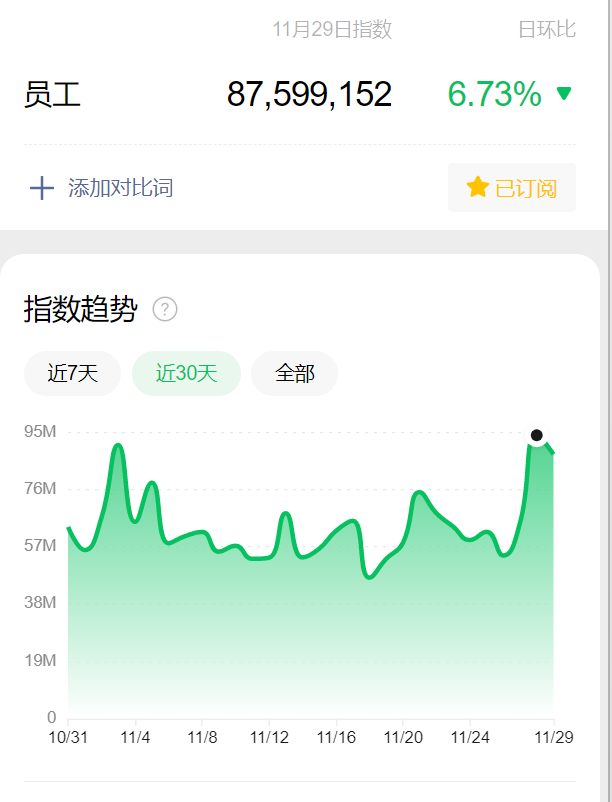 这里可以看到国企这个词是上涨趋势,员工这个词是下降趋势,我们就可以发表文章的时候添加上涨的词,增加成为爆款的可能。