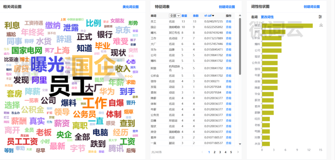 接下来我们先把排名前面的名词提取出来,分别是:员工、国企、大厂、公积金等。