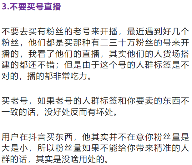 这期间踩过的坑也有不少,下面是我根据我们这几年玩抖音直播起了20多个账号,复盘总结出来的实操经验;每一条都是肺腑之言,真心希望你能够花3分钟时间好好看看。