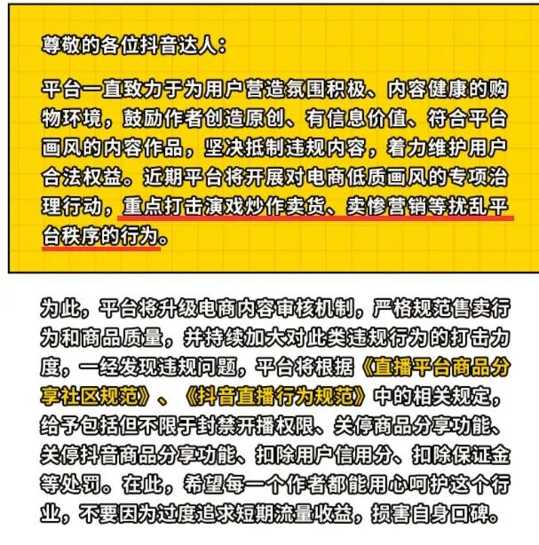 7月份,抖音电商也正式发布抖音直播禁忌之又到互动的违规营销实施细节。