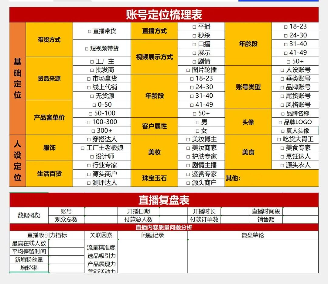 账号定位梳理表