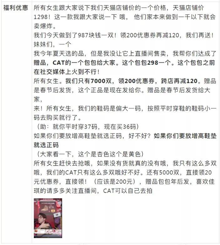 适用场景:讲述过程中会将重点放置在福利、数量部分,不断提醒用户限时销量,营造出一种「不容错过」的氛围