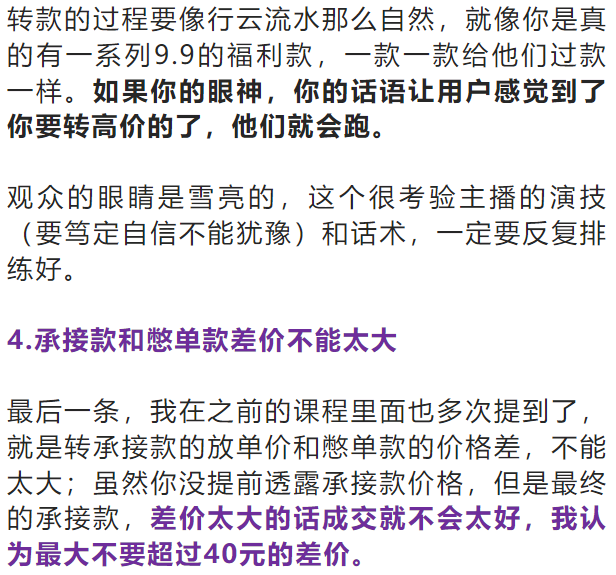 首先重中之重,你转承接款,一定一定不能提前透露承接款的价格,一旦提前透露了,在线的人肯定会马上跑。