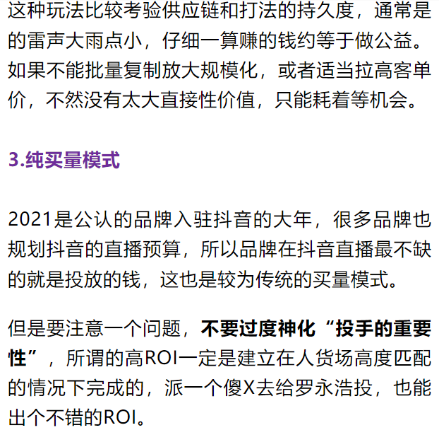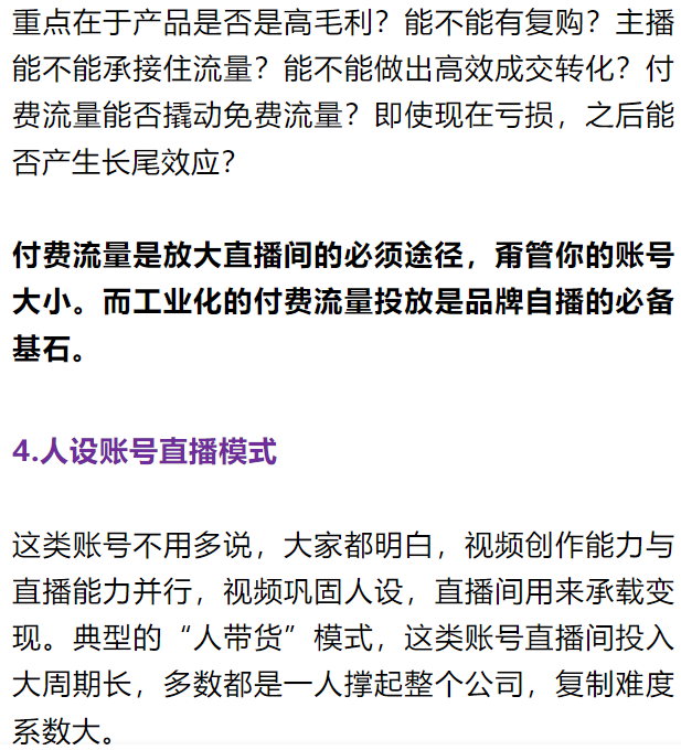 单位时间内在线人数不多,但是累计销售额却很高,对主播要求低,适合批量化复制,一套方法论N个直播间同时上。