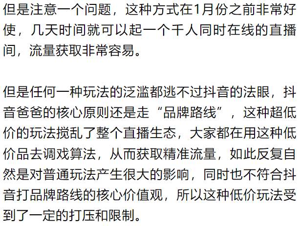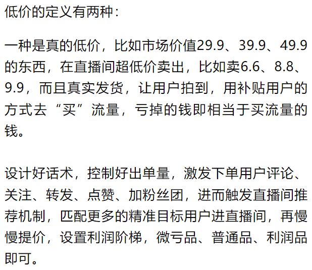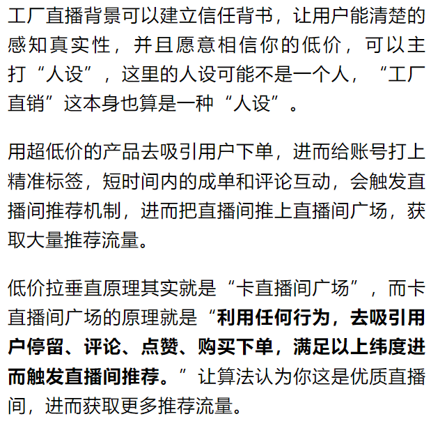 低价拉垂直比较适用于垂类直播间,更适合工厂直播。