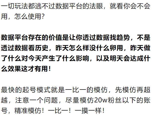 大家都清楚,抖音的变化或许是最快的一个平台,没有任何一套玩法能让你持续坚持下去,即使头部玩家也要跟着平台调整策略,跟着平台调整打法,所以抖音没有常青树!