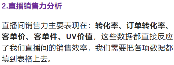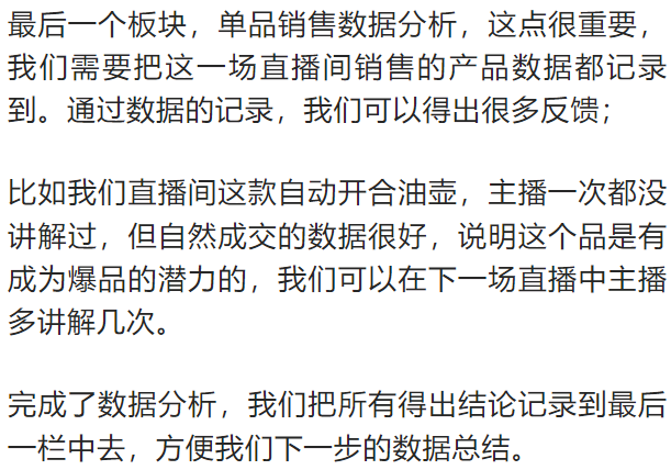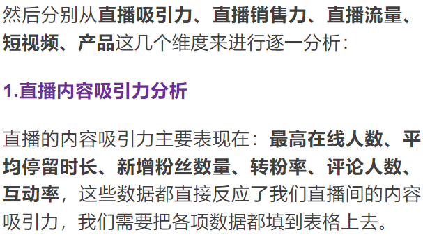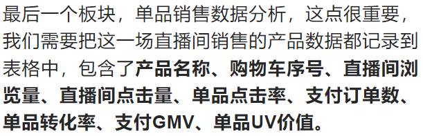 这个表格的作用主要是针对单场直播做复盘,我们需要对第一步记录的大量数据和信息进行分析。