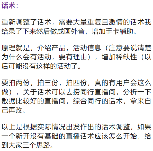 我的理论及给到的建议就是速度,别想那么多,说的再简单点,有个主播,会说话就可以把直播干起来了。