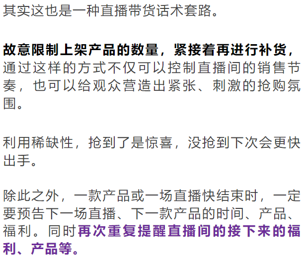 不只是在直播开头,想要留人,各种福利,比如限量1元(9.9元)包邮秒杀、送###、3折促销、买二送二等利好的政策,都需要贯穿全场。