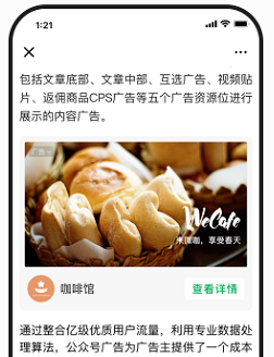 文中广告:开通流量主后,发布文章也可以在文中插入广告卡片,同样是千人千面的;