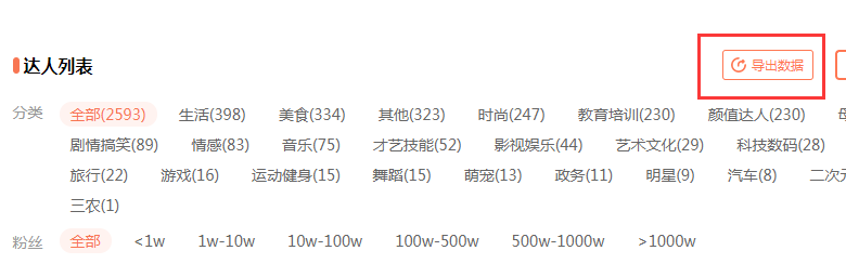 为了找到更精准的达人,我们可以根据店铺定位来选择对应分类下的达人信息。