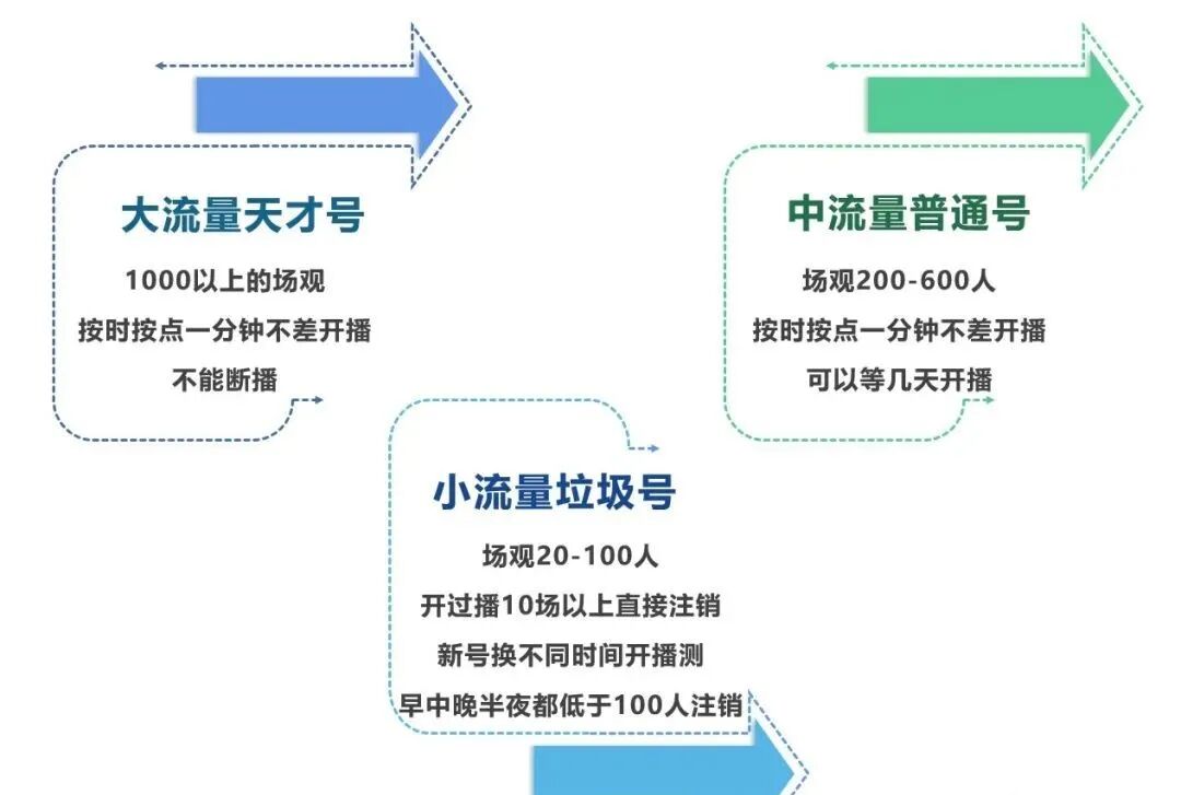 这时根据人气数据和成交数据,确定账号的效果:大流量天才号、中流量普通号、小流量垃圾号。