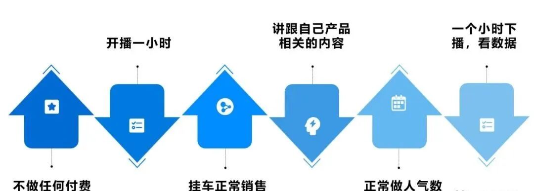 然后我们进行测号,测号的步骤:不做付费、开播一个小时、挂车正常销售、讲产品相关内容、正常做人气和成交数据、一个小时下播看数据。