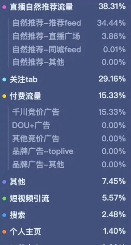 再比如下面的流量渠道截图,而这个直播间的流量占比就比较合理。
