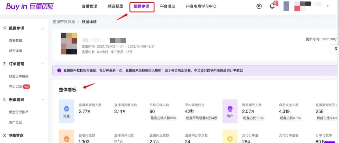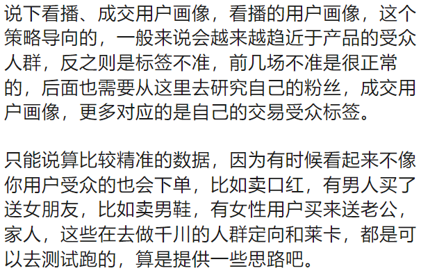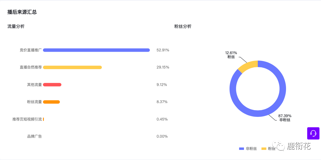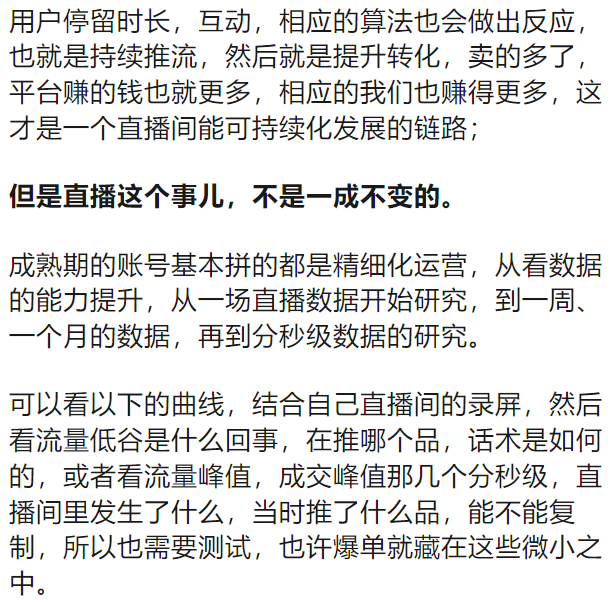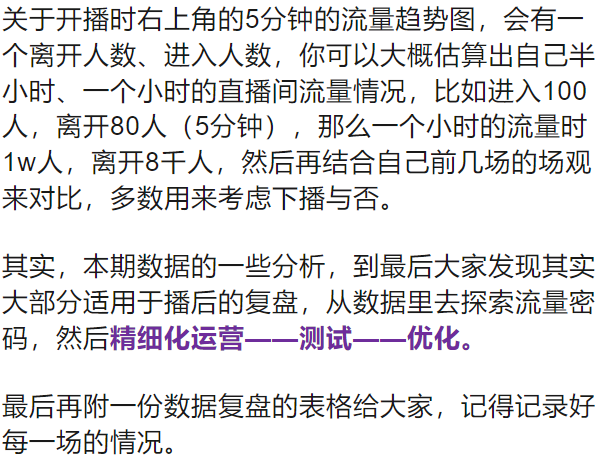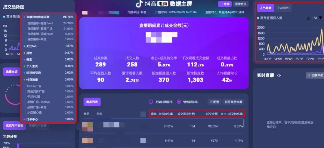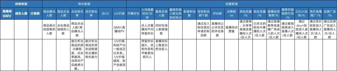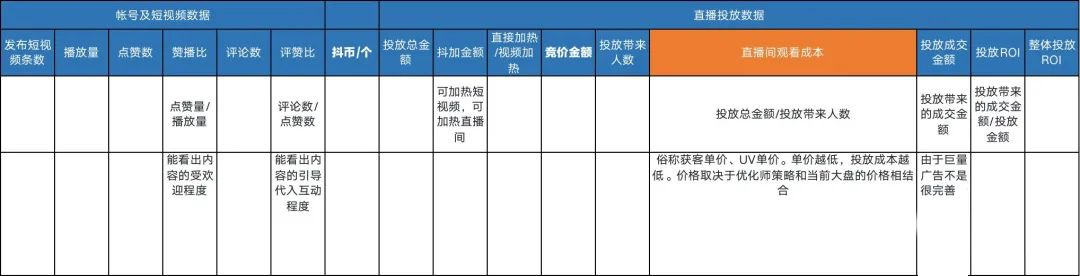 3、转化率,一般指进入直播间的人数和下单人数的比例,衡量“人货场”的指标;