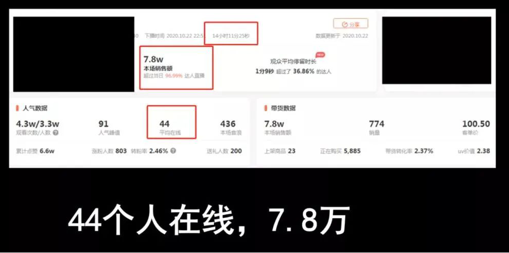 这场直播,平均每分钟44人,卖了快8万块,播了14小时。
