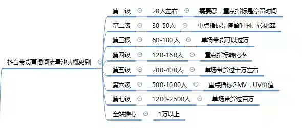 这是估算的抖音带货直播的流量池级别,数据颗粒度是指平均每分钟在线人数。