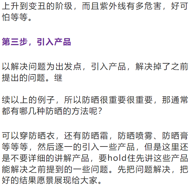 不要太假,太夸张,要从现实中来,从一句简单的抱怨开始,可以这样说,“今天又是个暴晒,天呐,就是羡慕那些皮肤晒也晒不黑的人,你看我这皮肤就是一晒就变黑,所以虽然很喜欢夏天,但是夏天的暴晒却让我非常的痛苦,”浅浅地提出问题。