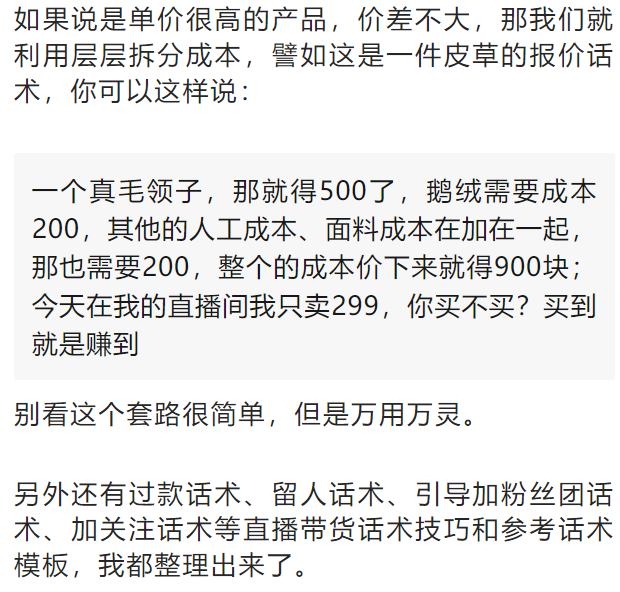 这样你才能举一反三,把话术模板套用到自己的直播间去。