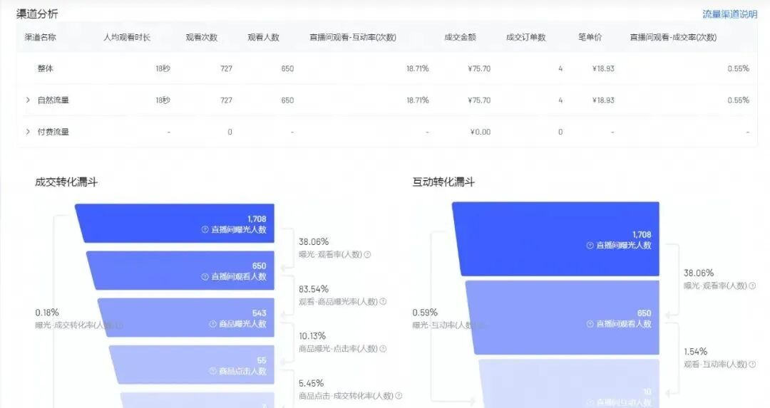 人均看播时长:进入直播间的人平均停留看直播的时间,表明主播留人能力,越高主播留人能力越强,跟货品和玩法有关。