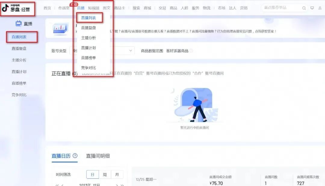 查看抖音直播经营指标数据的入口我们新手商家要掌握好,主要是抖音电商罗盘。