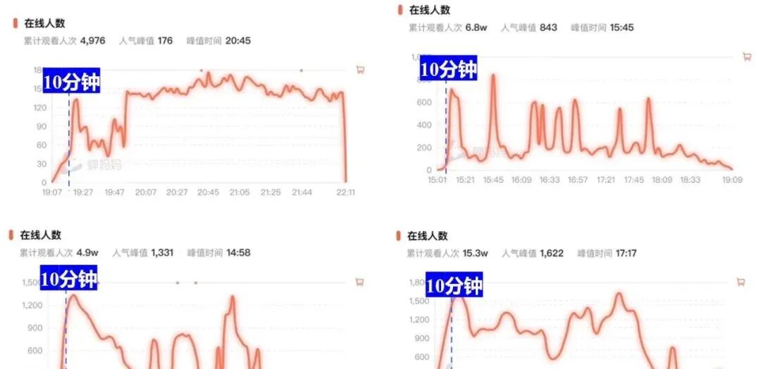 这篇文章先给大家分享直播开播暖场阶段的盯盘和调整技巧。开播暖场阶段会有流量直接进入直播间,这时我们该如何盯盘和调整呢?下面4个流量取消全部有一个共同特征就是开播10分钟流量快速进入直播间。