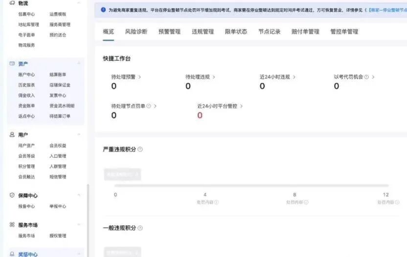 我们可以通过抖店奖惩中心查看店铺违规处理情况,具体方法:抖店后台——奖惩中心进行查看商家具体违规情况及违规积分。
