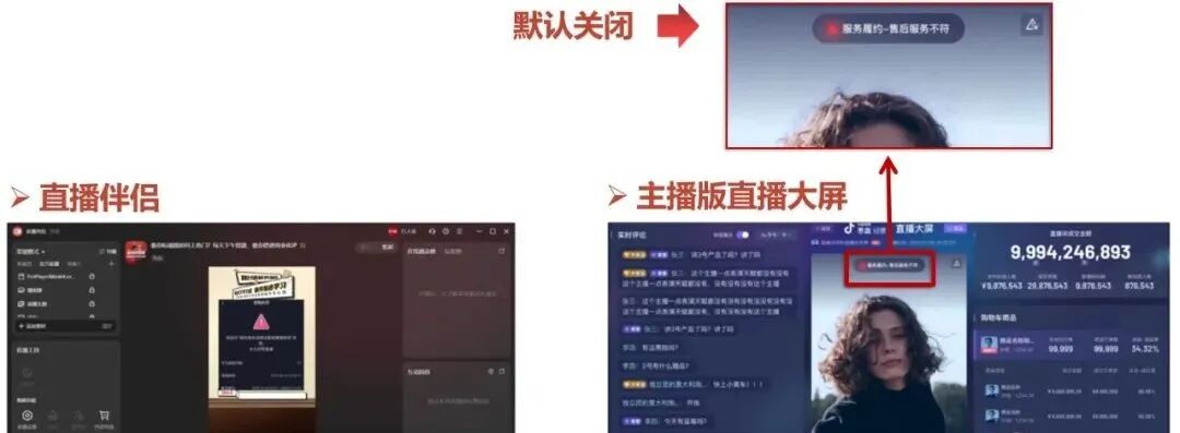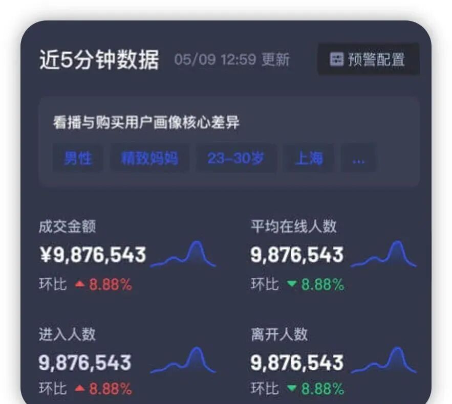 当转粉数据低的时候提示主播增加信任话术、品牌话术等;当发现灯牌数量少,可以通知主播上活动话术要灯牌;当发现评论少,提醒主播多让观众互动话术。