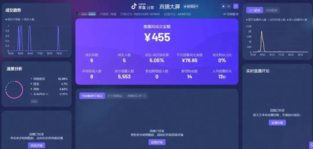 尤其是在直播过程中,新手商家一定要关注直播大屏的数据。