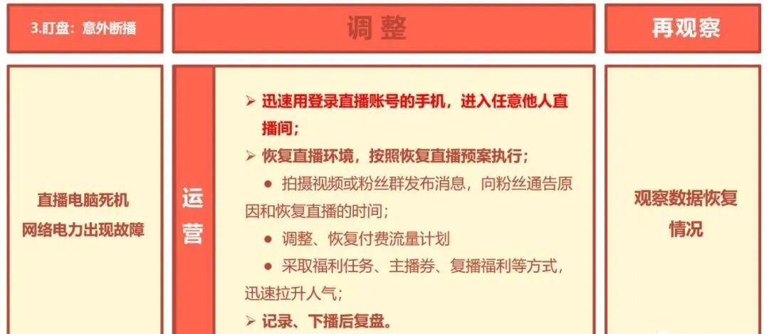 流量猛增一定要做好场记,及时通知主播以及团队,流量异常排查补救。