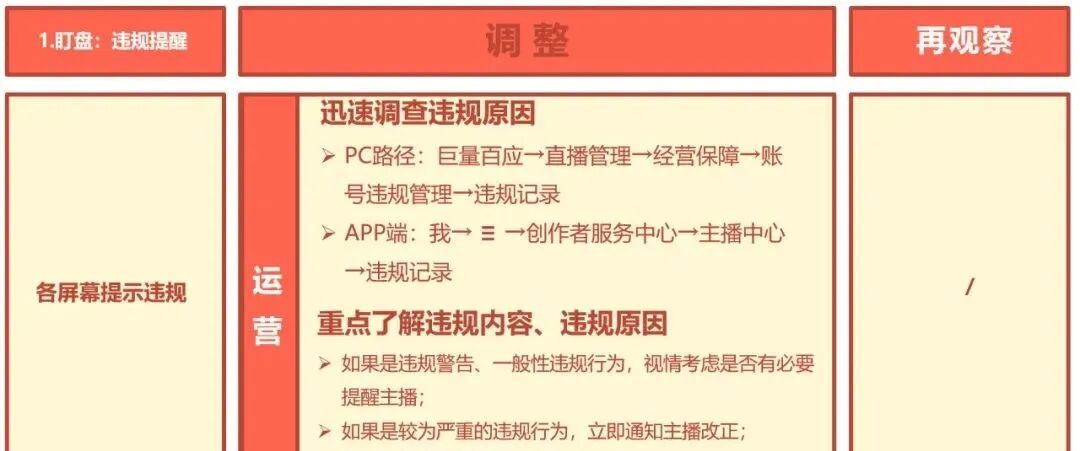 在直播过程中不要深究太多,重点了解违规内容、违规原因:
