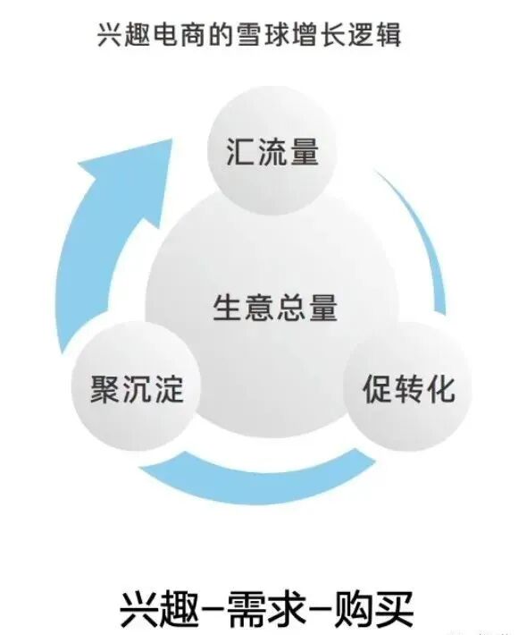 兴趣电商的增长逻辑就像滚雪球原理。以兴趣产生流量,所以说它的范围是非常大的,基于兴趣产生的需求也是非常的多,用户在这个过程中产生购买,其实就是转化了一层又一层。