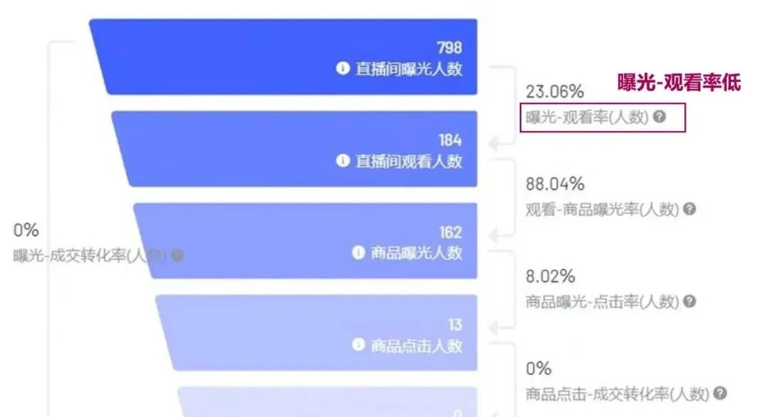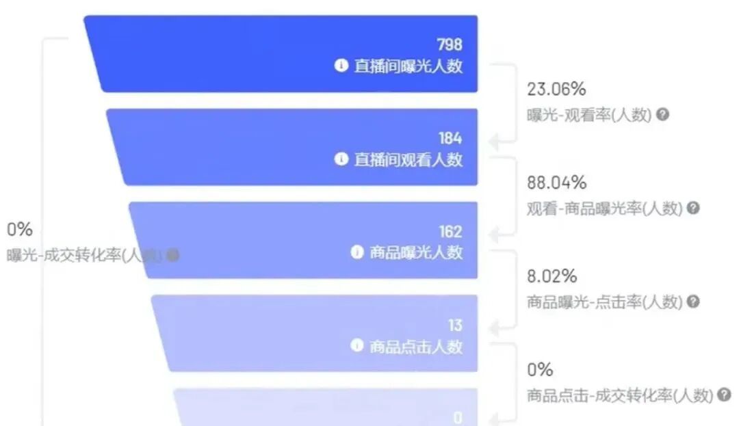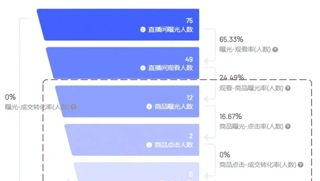 直播间留人就是留住机会,做好留人数据才能提高商品曝光和转化。通过成交转化漏斗我们可以看到。