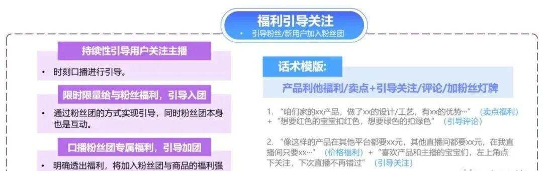 挖掘用户心理主要利用福利引导关注和加团,持续引导用户关注主播,限时限量给福利,引导入团,口播粉丝团专属福利引导加团。