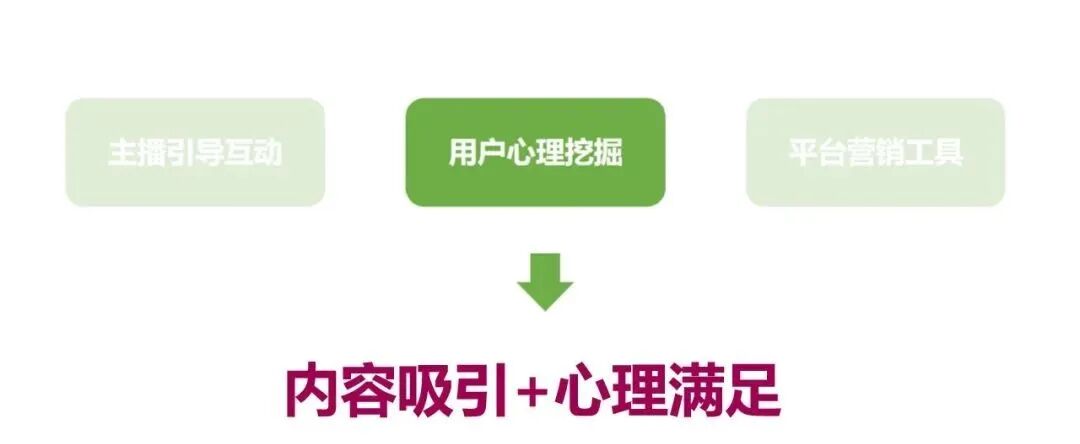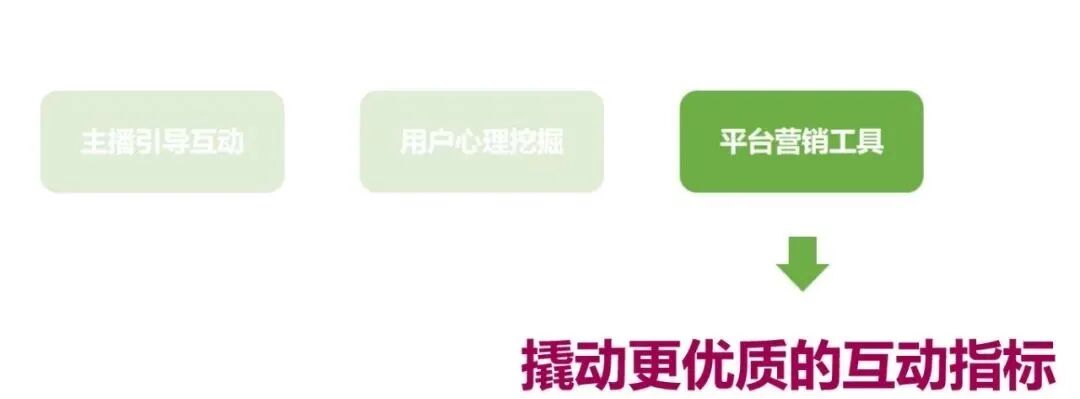 通过上图可以看到直播间互动环节有三个:主播引导互动、用户心理挖掘和平台营销工具的运用。