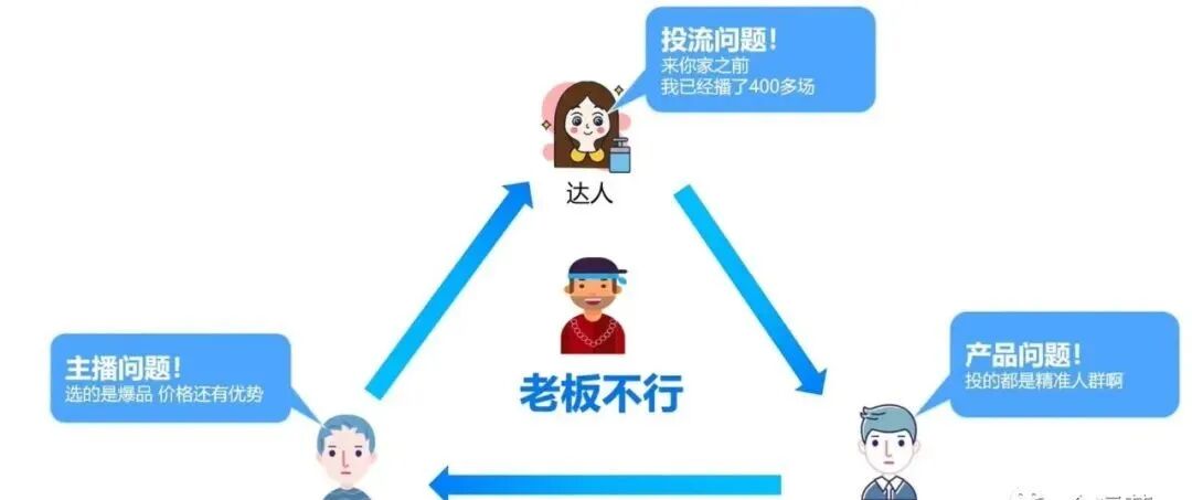 这时千万不要在直播团队中出现不和谐的声音:产品说主播问题,主播说投流问题,投手说投的都是精准人群,最后得出结论老板不行。