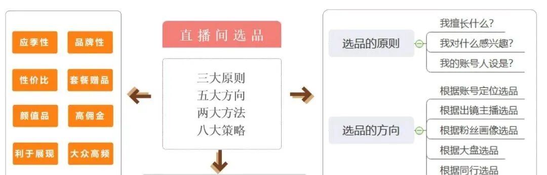 选对商品就是选品,直播间选品三大原则、五大方向、两个方法、八大策略。