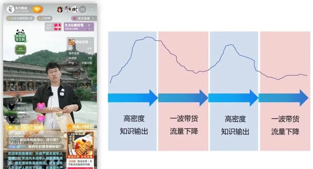 知识型内容达人直播玩法,通过知识输出留人,人均看播时长能够持续在6-7分钟。