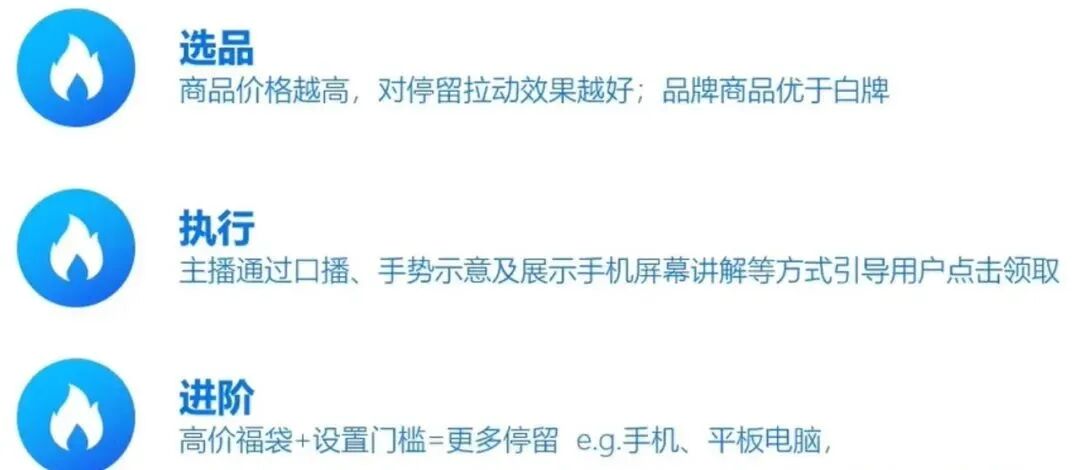 直播间留人我们通过三个方面可以做到很好,也就是称为直播间留人三板斧,分别是:营销工具、营销活动和直播间内容优化。