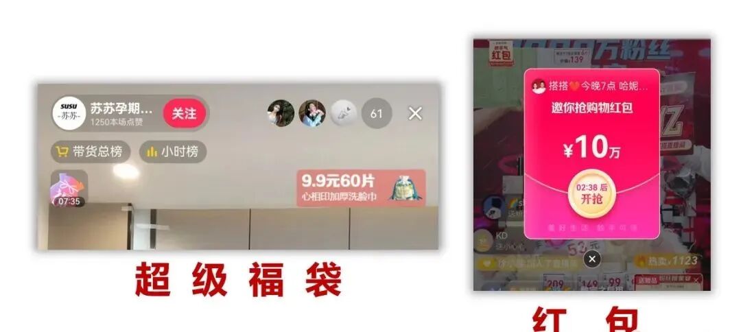 直播间常见的营销工具就是超级福袋和红包,我们可以很好的利用超级福袋和红包进行观众的停留。