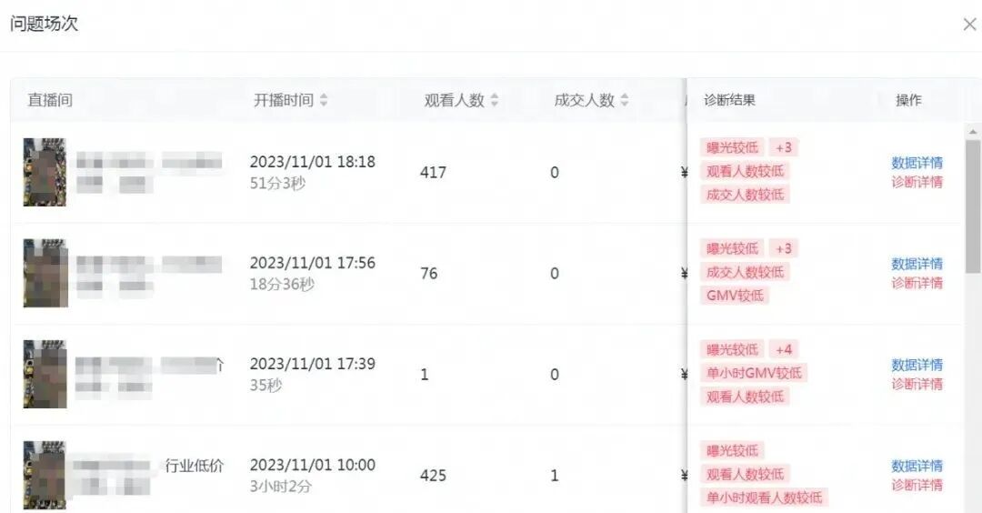 可以直接查看有问题的直播场次,可以看到直播场次的诊断问题。