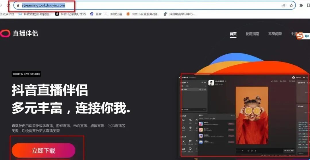 抖音直播伴侣官方地址:https://streamingtool.douyin.com/,打开后直接下载安装。