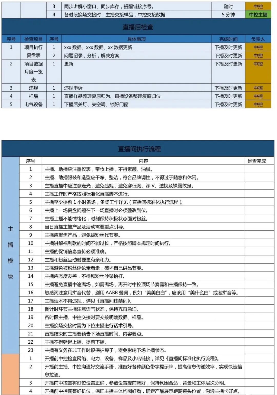 直播间标准化执行流程