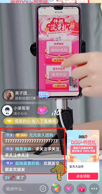 这样就能让新进来的用户关注到这里原来是有活动的直播间,把用户留在直播间。