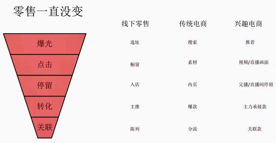 兴趣电商的生意则是通过内容激发消费兴趣,路径“兴趣 - 需求 - 购买”。