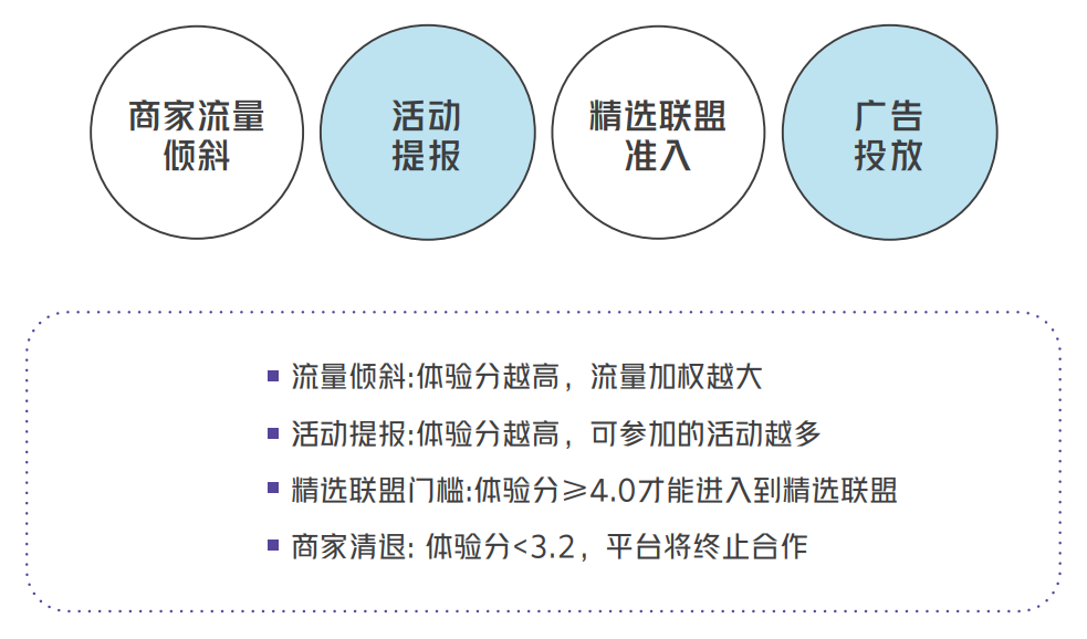 商家体验分具体维度:商品体验50%、物流体验15%、服务体验35%;