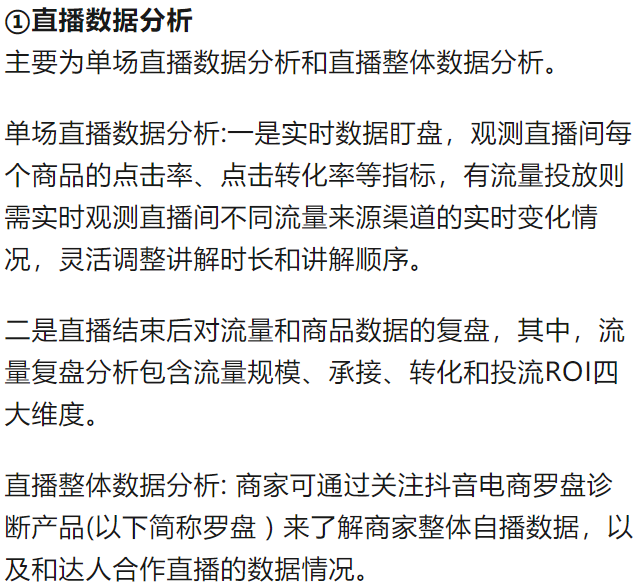 ①商家自播:有助于商家增强内容管控、积累人群资产,以进行稳定长效的运营。